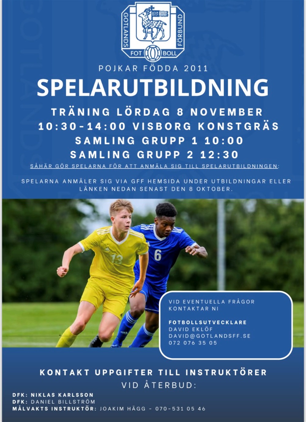 Nu är det dags för spelarutbildning med Gotlands fotbollsförbund igen. Anmäl er på länken nedan eller via förbundets hemsida.