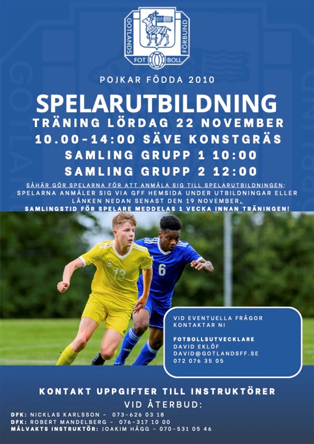 Nu ligger anmälan ute för årets sista spelarutbildning till lördag 22 november för pojkar födda 2010 (15 år).